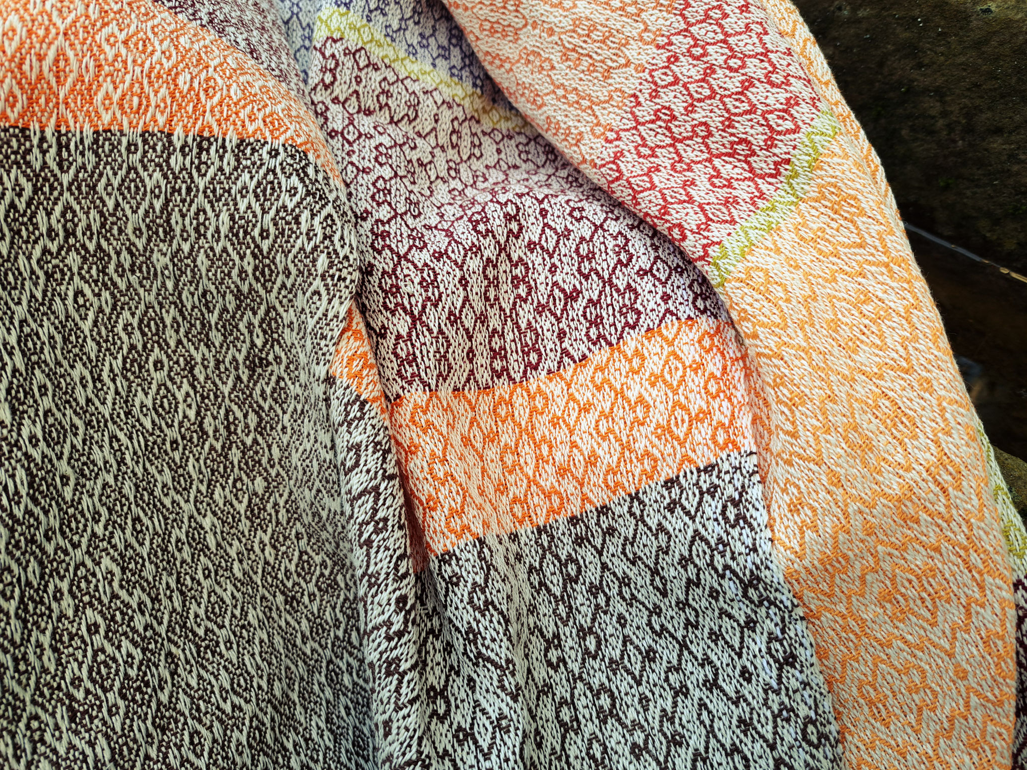 Alle Streifen sind mit einer anderen Farbe und unterschiedlichem Muster gewebt.