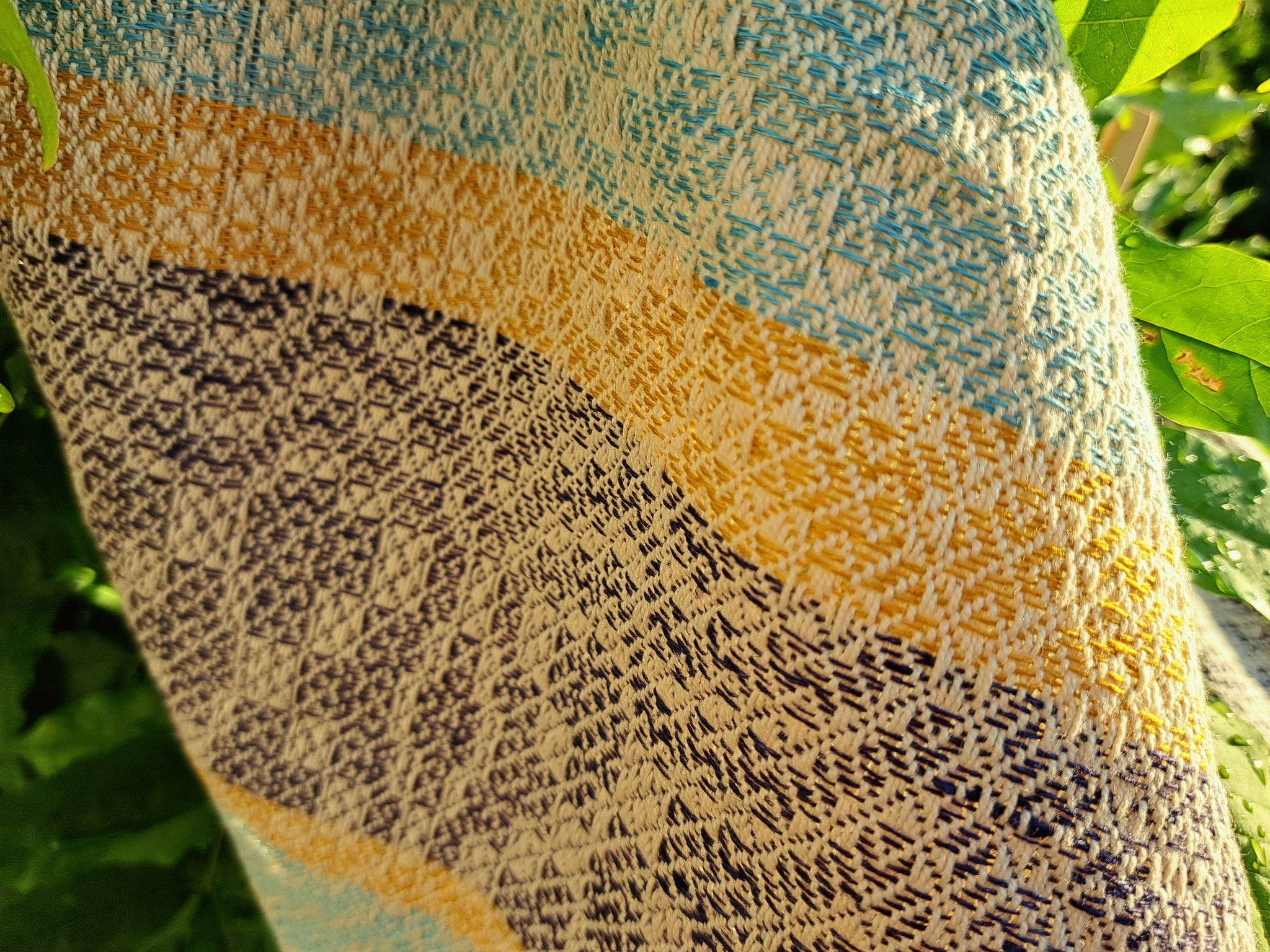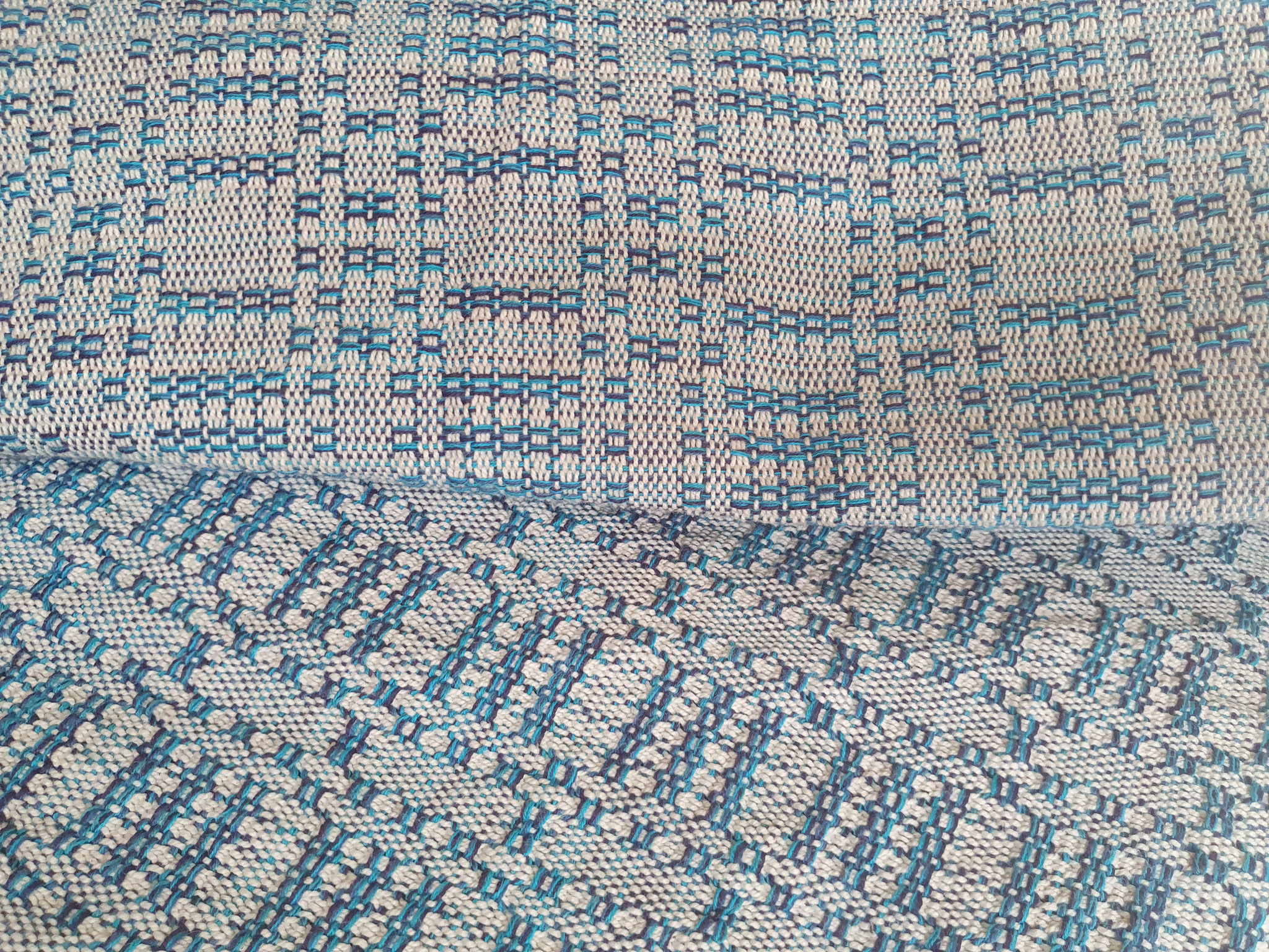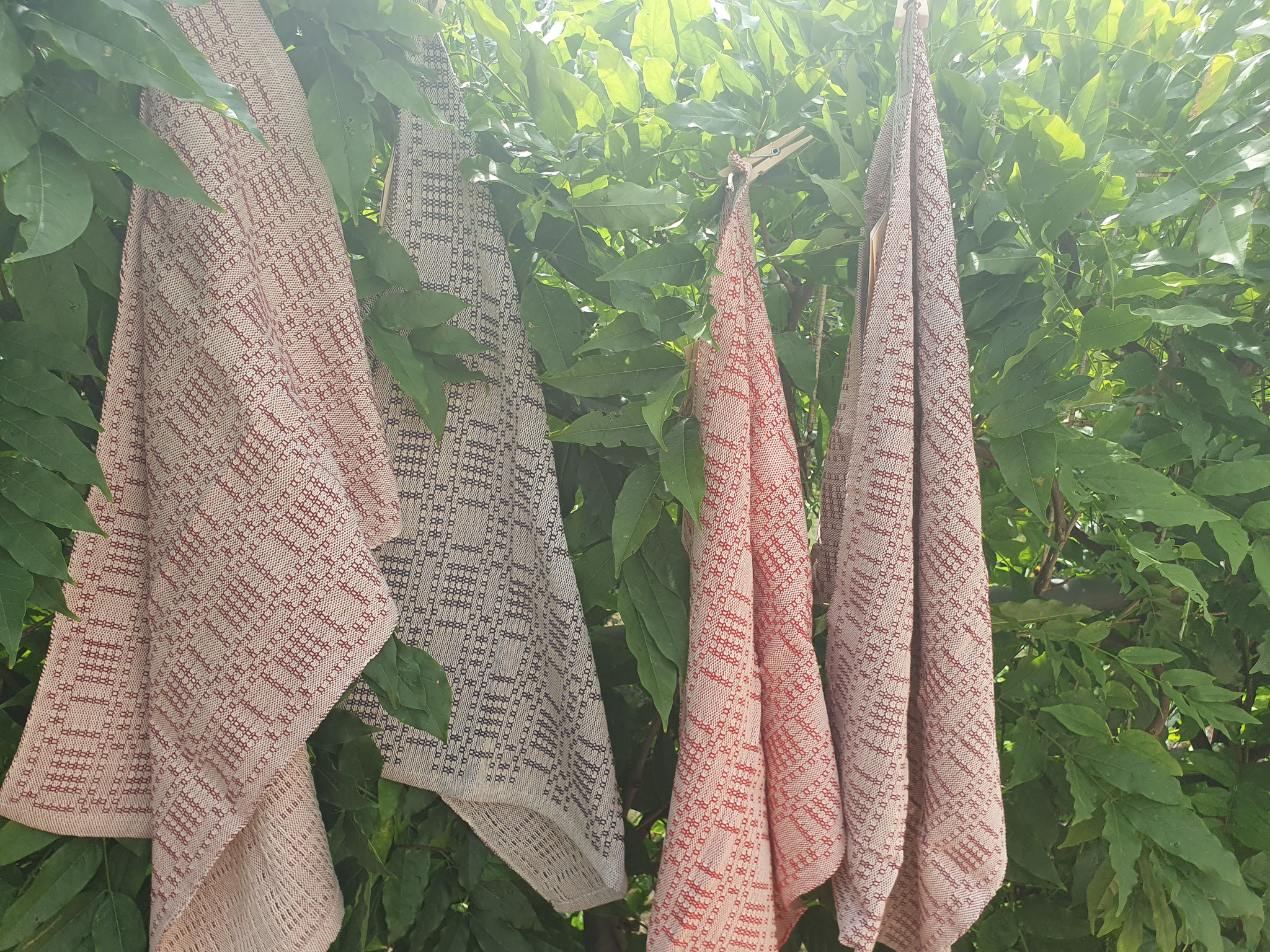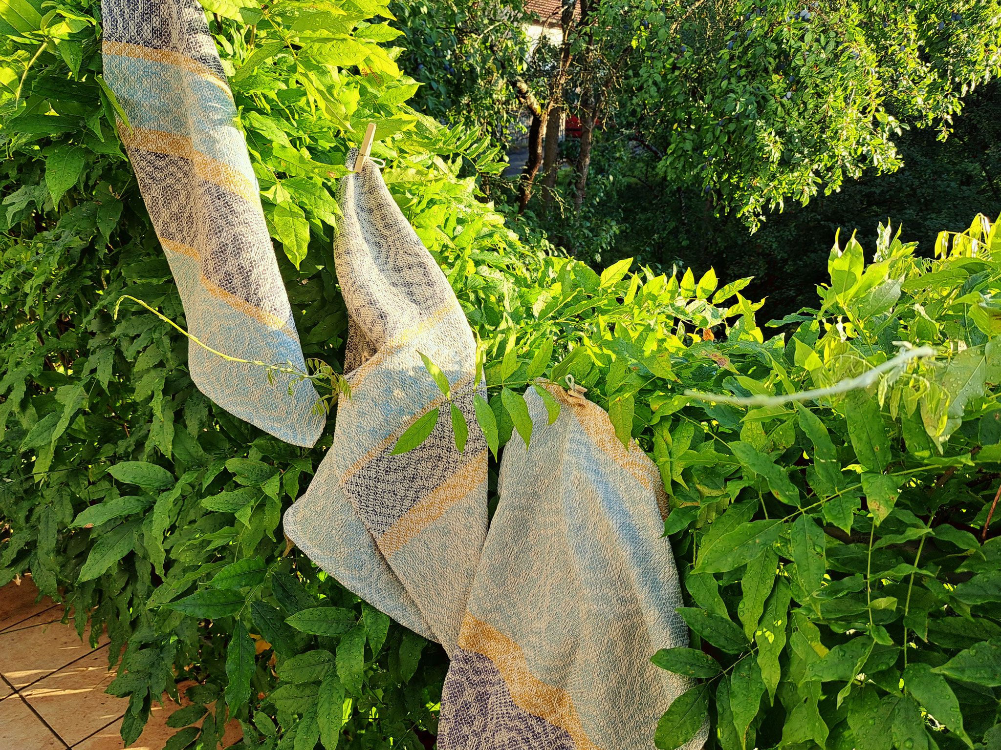 Diese interessant gemusterten Tücher waren unsere Antwort auf die Ausgangssperre während Corona: Und weil sie so schön sind und sich so wunderbar anfühlen, wurden sie wieder gewebt.